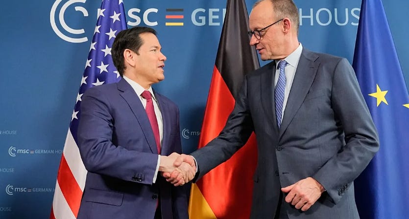 German Chancellor Merz, opening the conference a day before Rubio spoke, declared that the rules-based order “no longer exists,” revealed nuclear deterrence talks with Macron, and warned that “even the United States will not be powerful enough to do it alone.”