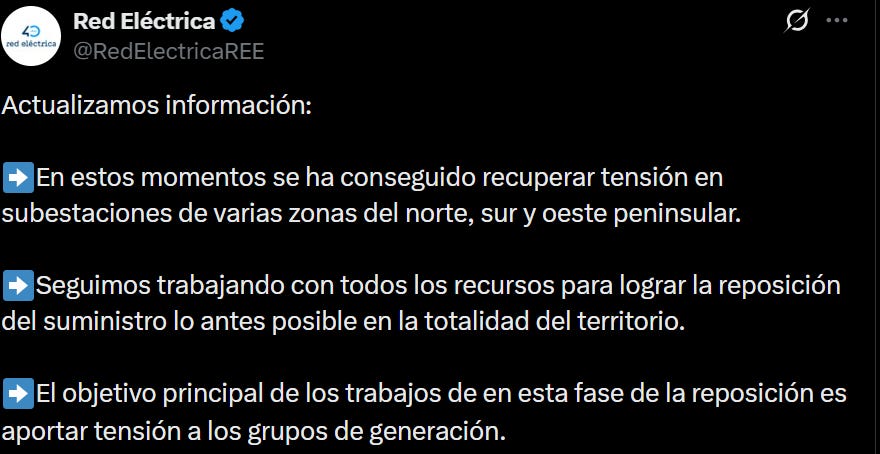 Note: At the time of publication, while progress has been made in restoring services at some substations across parts of the Peninsula (as Red Electrica’s official update shows), full service has not yet been restored. Please continue to monitor for further updates on power restoration and the complete outcome of the investigation.