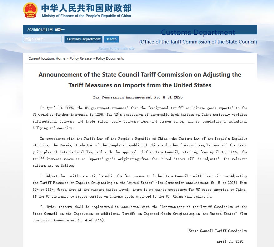 With the stock market under pressure as the global trade war accelerates and geopolitical fragmentation deepens, the political risk sign paradox (where a decrease in political risk typically correlates with higher stock market returns) is now operating fully in its true inverse. On April 10, the United States imposed a 145% tariff on Chinese imports, prompting China to retaliate on April 11 with a 125% tariff on U.S. goods.